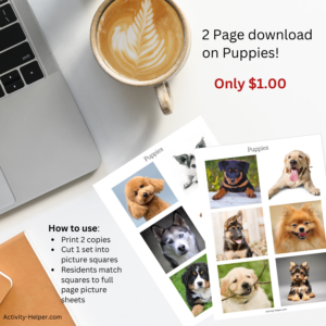 This is such a great trivia game. You say the first part of the saying and the residents chime in with the rest to Finish the Phrase. This collection is full of a variety of phrases to use! Using this on a consistent basis with people that have memory issues, will help you to create a failure free activity. This can begin giving your residents confidence in their abilities.